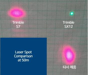 안전하고 정확한 그린 레이저 (50m 기준 3mm) - 향상된 카메라 기능 (Trimble SX10 대비)107배 줌으로 더욱 정확한 시준 및 선명한 이미지 취득
